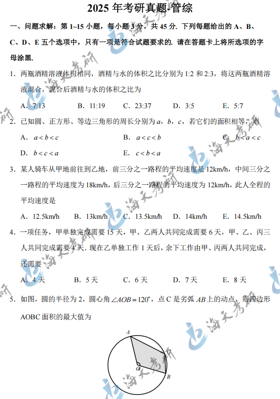 2025考研管理类综合能力真题汇总完整版